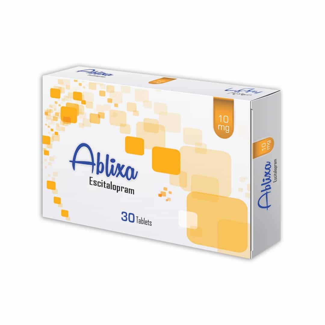 Ablixa Tablets 10mg is a prescription-only antidepressant medicine available in packaging of 1 box = 3 strips, and 1 strip = 10 tablets. The active ingredient is Escitalopram as Oxalate, which belongs to a group of medicines called Selective Serotonin Reuptake Inhibitors (SSRIs). It is commonly prescribed for the treatment of depression and anxiety-related disorders.