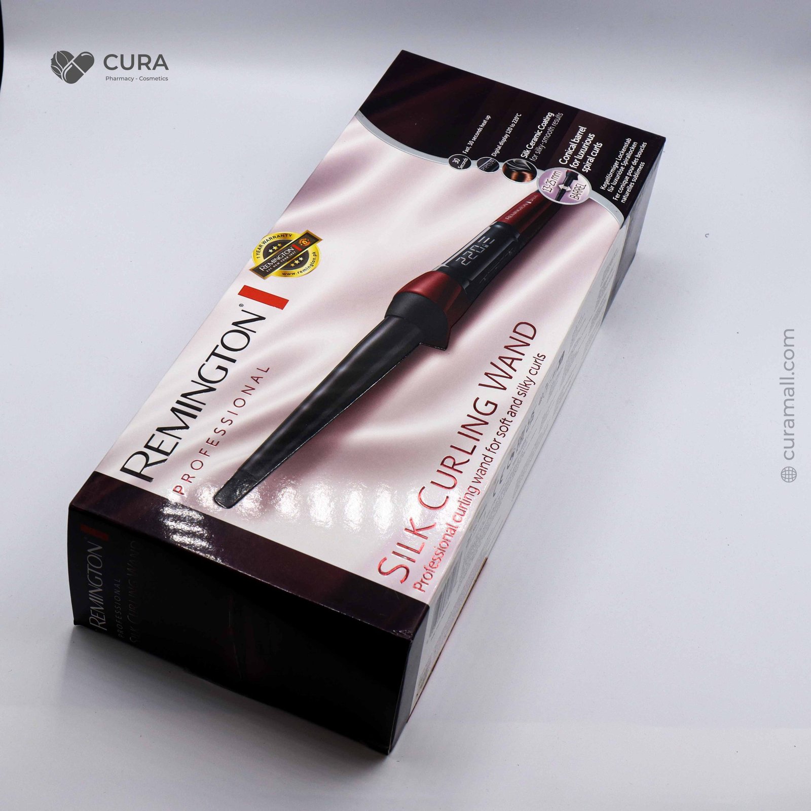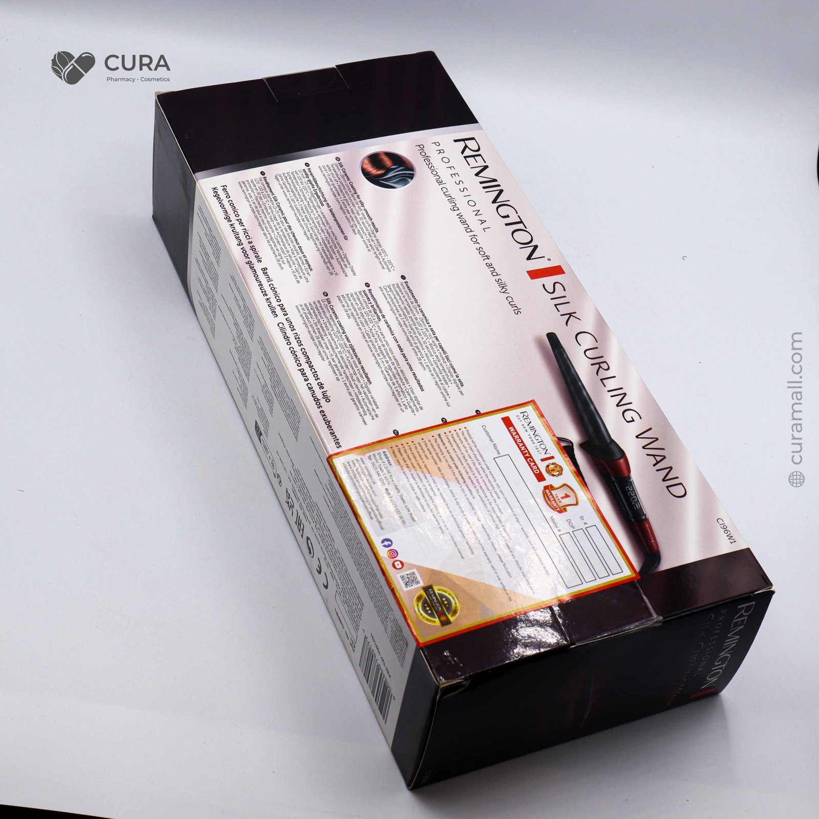 The Remington Curling Wand CI96W1 is designed to create natural, long-lasting curls with ease. Featuring a tapered barrel coated with Silk Ceramic technology, it glides smoothly through the hair while reducing frizz and adding shine. With fast heat-up and variable temperature settings up to professional levels, it adapts to different hair types for customized styling. Its clamp-free design makes wrapping hair simple and effortless, giving you salon-quality curls at home.