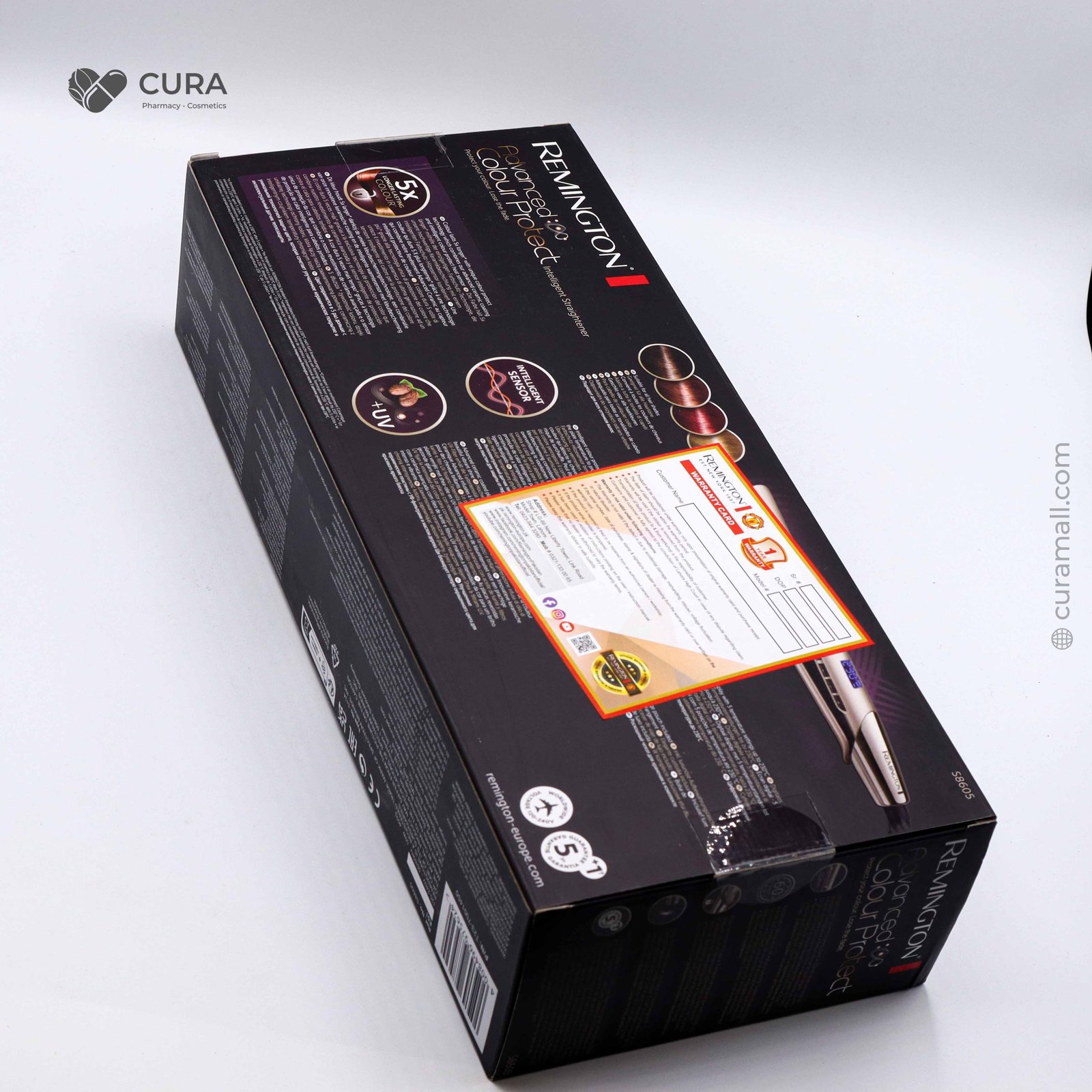 The Remington Hair Straightener S8605 is a professional-quality styling tool designed to protect and nourish hair while delivering sleek, long-lasting results. Featuring Advanced Ceramic plates infused with shea oil, UV filters, and micro-conditioners, it enhances shine while reducing frizz and damage. With fast heat-up, variable temperature settings, and intelligent sensors that regulate heat, the S8605 ensures safe and effective styling for all hair types. Its modern design combines performance and care in one powerful tool.